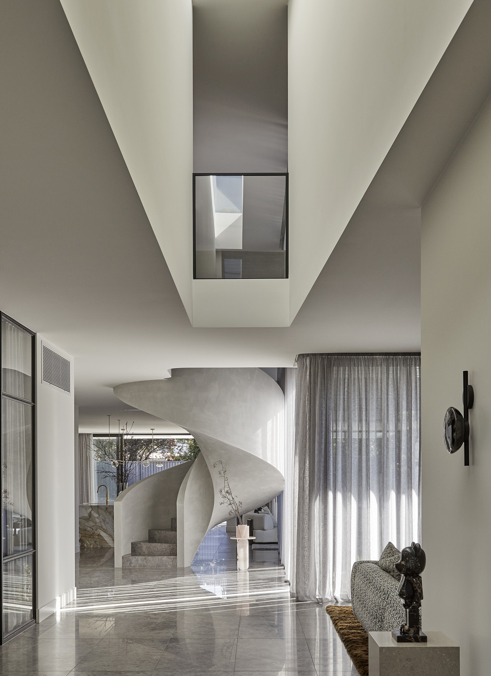 Dans une banlieue verdoyante de Melbourne, la Résidence K transpose la puissance expressive de son enveloppe sculpturale dans un intérieur à la fois monumental et apaisant.