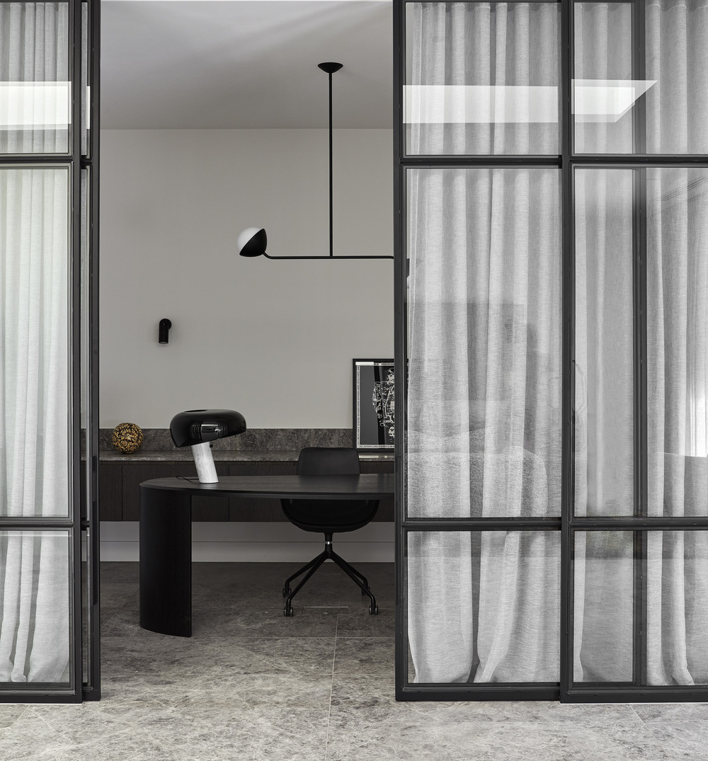 Dans cette maison australienne, située à Melbourne, les doubles hauteurs, les circulations ouvertes et la présence structurante de la pierre tissent un art de vivre à la fois monumental et raffiné.