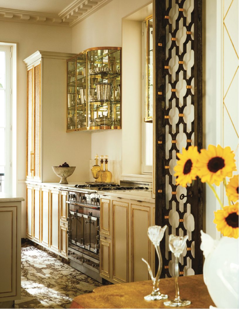 Personnel. Le projet s’est bâti autour d’objets rares et précieux, choisis ou chinés par Hugo Marchand. Esthétique. Inspiré par la grille en fer forgé signée Poillerat, le motif en croisillons rythme l’aménagement.