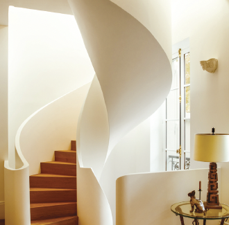 Tandem. Complicité entre Hugo Marchand et Laure Gravier autour d’une vision commune du beau et du fonctionnel. Atmosphère. Conçue pour un couple passionné d’art et de patrimoine, la maison mêle charme classique et esprit contemporain. Cha(t)leureux. Douce banquette, repas conviviaux, chat en balade… le design ne sacrifie pas le quotidien.