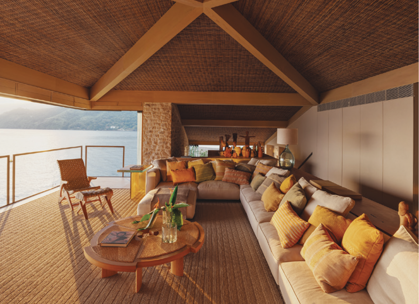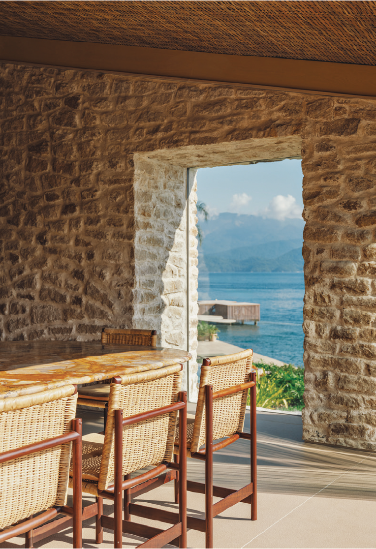 Immersion La perspective sur l’Ilha Grande invite à savourer toute la majesté du décor tropical. Souffle Un patio prolonge la forêt atlantique à l’intérieur et diffuse lumière et fraîcheur dans les espaces de vie.