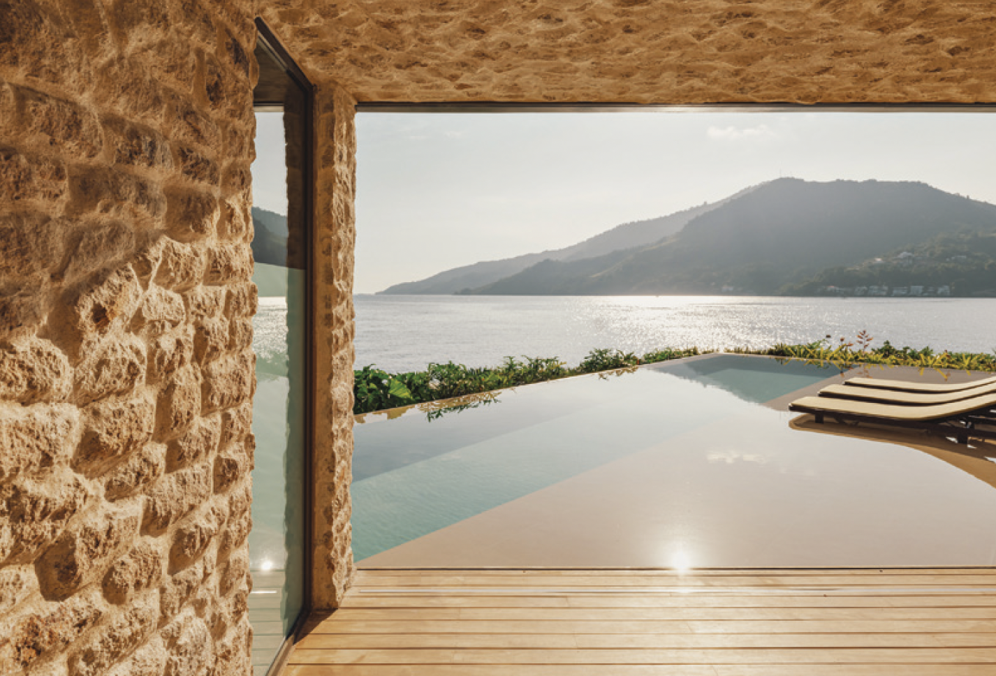 Infini. La piscine glisse vers l’horizon, brouillant la limite entre architecture et nature.