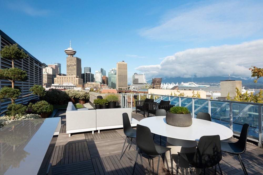 Le projet d’aménagement comprenait également un toit-terrasse de 350m2 déployant une vue imprenable sur les montagnes, les navires de croisière et le centre-ville. L’ajout d’un barbecue intégré, d’un grand foyer et d’une végétation abondante, a fait de cet espace extérieur un lieu confortable et fonctionnel.