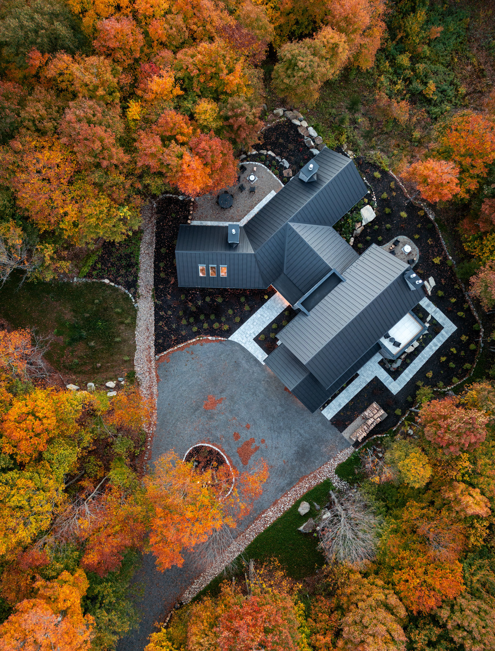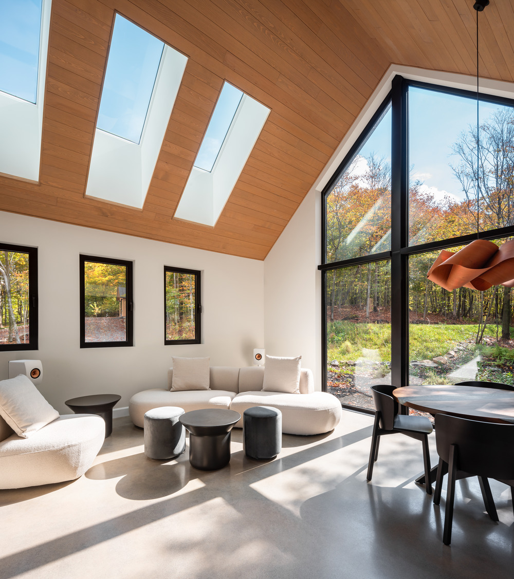 Le pignon épuré, signature d’Atelier Boom-Town, dessine une silhouette contemporaine dans le décor laurentien.