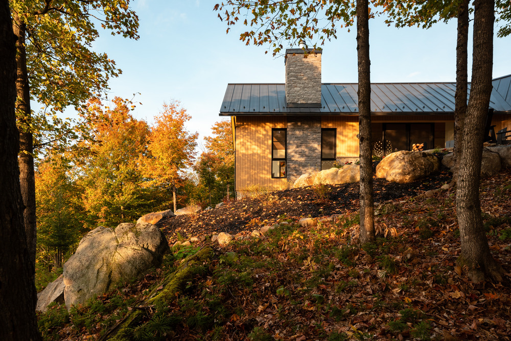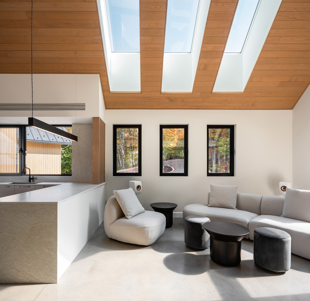Le pignon épuré, signature d’Atelier Boom-Town, dessine une silhouette contemporaine dans le décor laurentien.