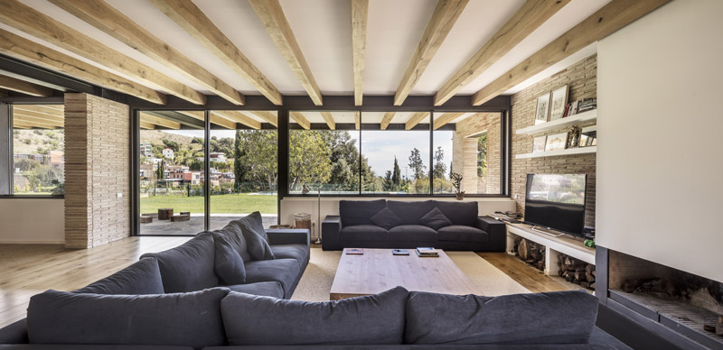 Juchée sur la colline de Tibidabo, avec une vue incroyable sur tout Barcelone, l’habitation de 1 000 m2 bénéficie des avantages de la ville et de la campagne. Des préoccupations environnementales fortes ont guidé l’articulation du projet baptisé Casa SV. Pour les architectes du studio Jofre Roca : « Notre planète est malade. À ce titre, elle exige que l’architecture soit pensée de manière durable. En donnant la priorité à l’utilisation de matériaux renouvelables, nous entendons concevoir des bâtiments sachant produire leur propre énergie. » La vision des concepteurs s’est d’abord concrétisée par un mode de fabrication traditionnel. Les murs intérieurs et les façades se composent de briques faites main par des maîtres artisans dans une usine locale. Des moules spéciaux ont été réalisés dans le but de s’adapter au millimètre près à chaque espace.