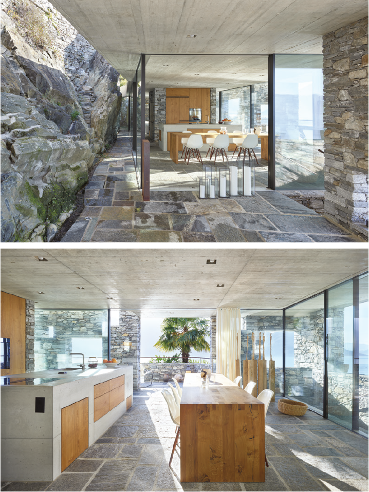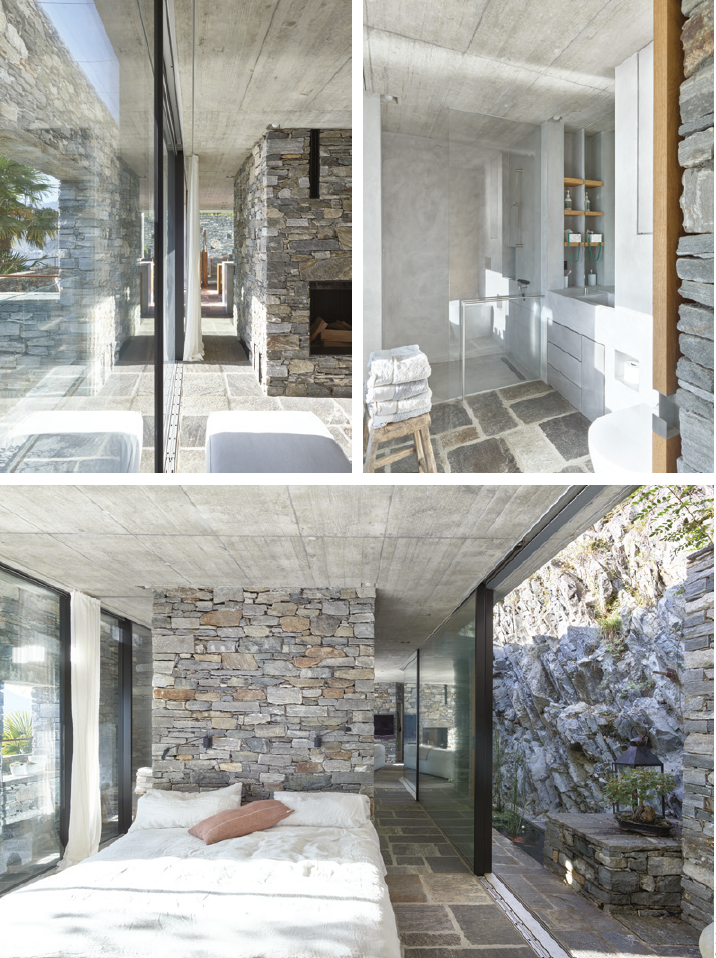 Brut. Construite en pierre locale du Tessin, cette maison fait entièrement partie du paysage