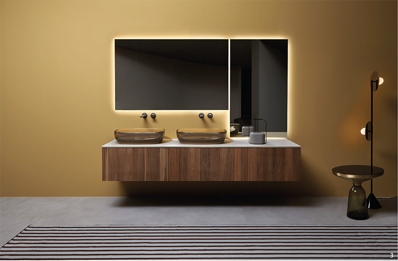 Le meuble Binario 12 chez Antonio Lupi arbore des rainures donnant à l’ensemble une texture tridimensionnelle. Un décor géométrique visant à valoriser la matière. antoniolupi.it