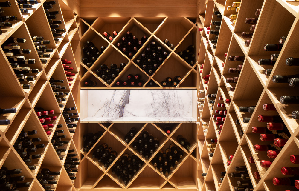 À l’intérieur, le dialogue entre matériaux naturels et lignes épurées se poursuit. Chêne, noyer, pierre, marbre et bois brûlé Shou Sugi Ban se combinent dans une harmonie raffinée. Les plafonds et planchers sans plinthes accentuent la fluidité des espaces, tandis que les portes affleurantes et l’absence de moulures instaurent une esthétique minimaliste. Le plafond cathédrale donne une impression de grandeur sereine, renforcée par des murs texturés et des courbes délicates. L’éclairage, étudié avec précision, met en valeur les œuvres d’art et les volumes, conférant à chaque pièce une ambiance singulière. Cette rénovation marie avec justesse design Mid-Century Modern, influences japonaises et scandinaves, et respect du site. Il en résulte une maison contemporaine, apaisante et profondément enracinée dans la nature.