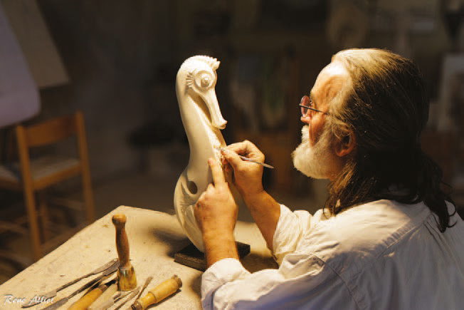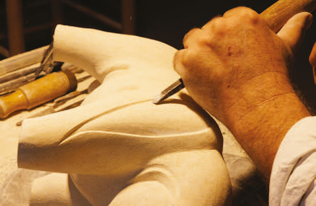 Élan. Le sculpteur taille le calcaire de Chauvigny ou le marbre de Carrare à la main.