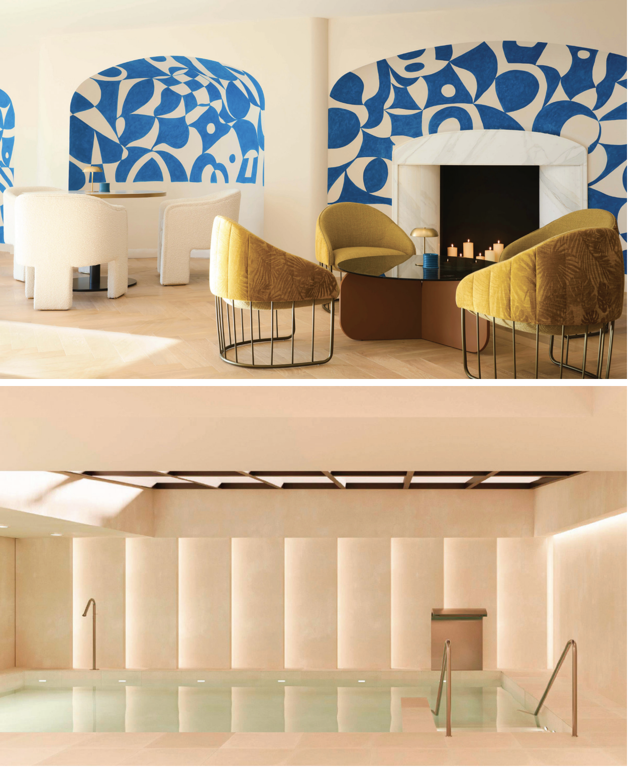 BIEN-ÊTRE. La décoration allie motifs graphiques et courbes organiques. L’hôtel dispose d’un spa ultramoderne au style raffiné signé Maison Codage.