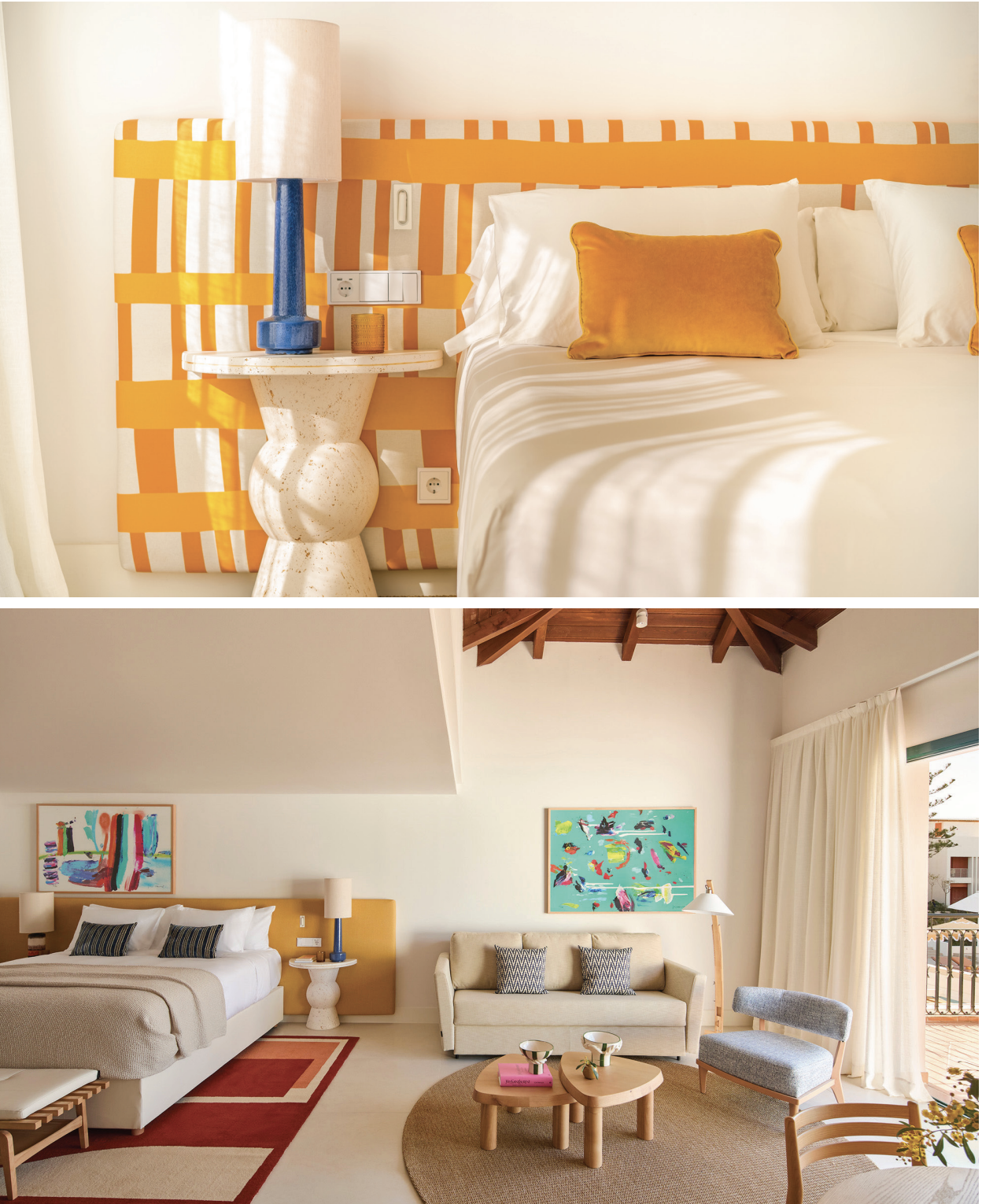 SOLEIL. Les chambres du Kimpton Marbella, conçues par Cristina Carulla Studio, revêtent des matériaux naturels et mettent l’accent sur les couleurs vives et solaires.