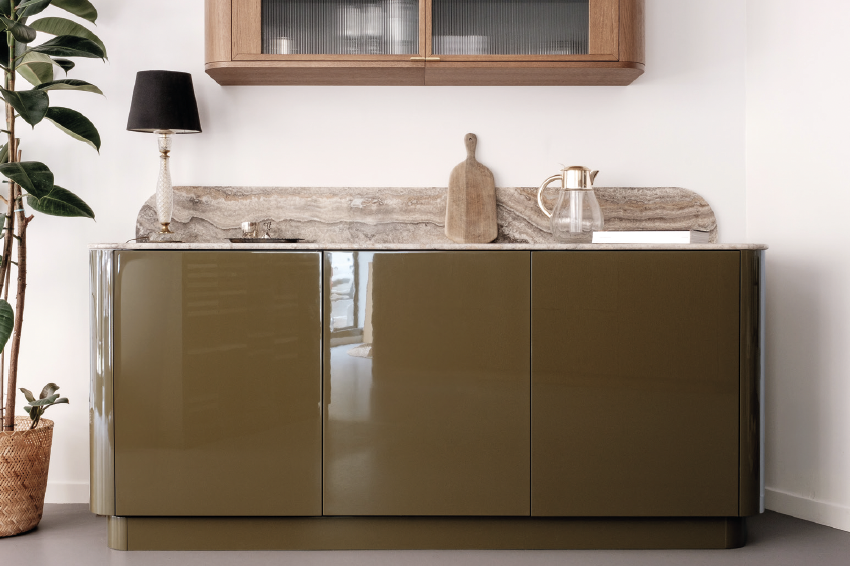 Modulable. Tangram de Cesar comprend des éléments courbés qui peuvent être reliés à des modules avec façade droite. Il est ainsi possible de créer des îlots de cuisine aux géométries inhabituelles. cesar.it