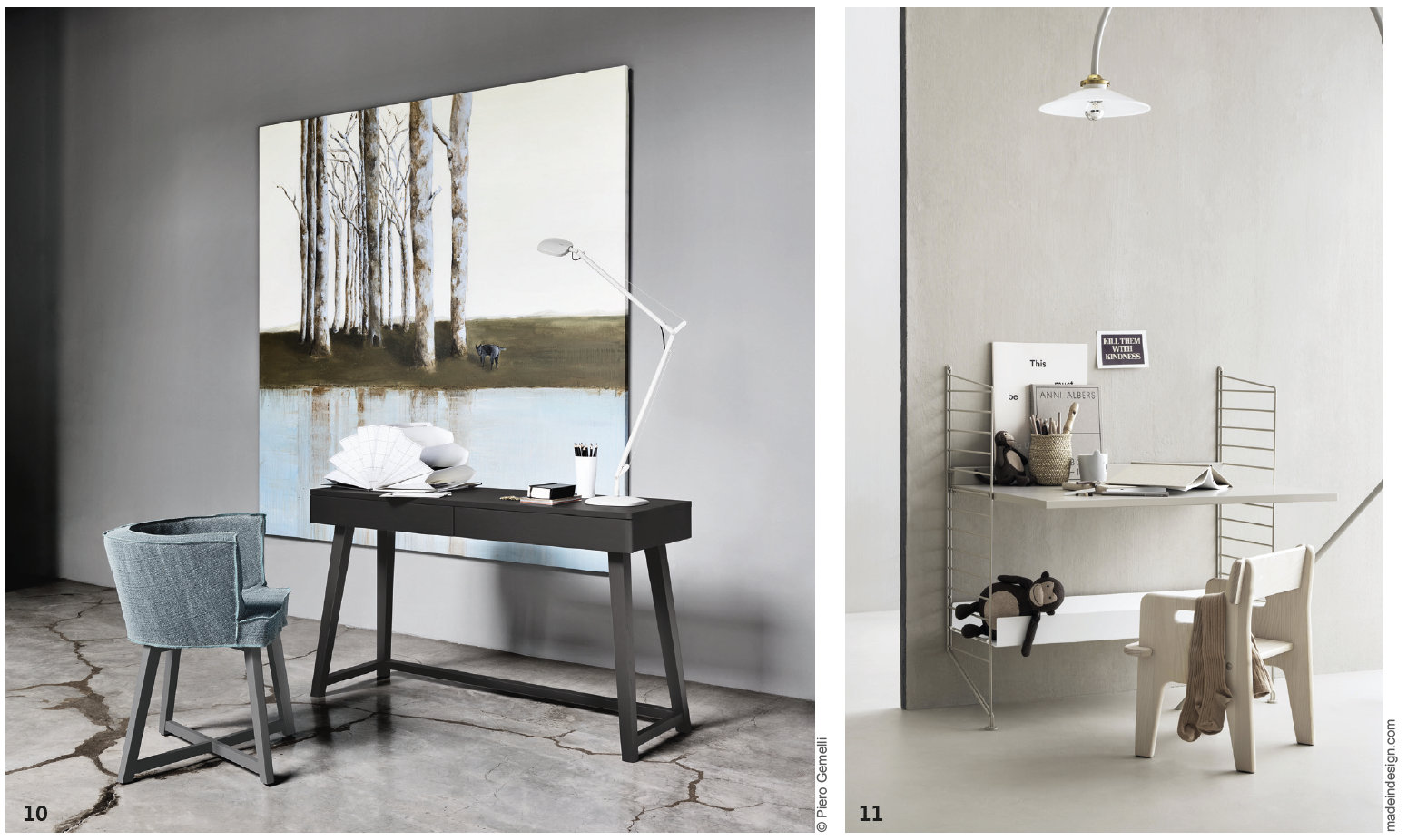 Le développement du télétravail a mis en lumière le bureau à domicile à travers quelques grandes tendances. Écritoire, pupitre, secrétaire… on note d’abord un esprit Old School avec des rééditions de pièces iconiques datant des années cinquante. Parallèlement, les préoccupations environnementales orientent le public vers des matériaux naturels. Le bois contribue à créer l’ambiance chaleureuse et confortable désormais recherchée dans le milieu professionnel et s’associe volontiers à des finitions plus élégantes. En vogue également, le style industriel urbain laissant la part belle au métal. Le mobilier est désormais plus léger, facile à déplacer, désencombré. Nuances apaisantes, lignes épurées, compartiments de rangement : le bureau d’aujourd’hui vise l’essentiel.