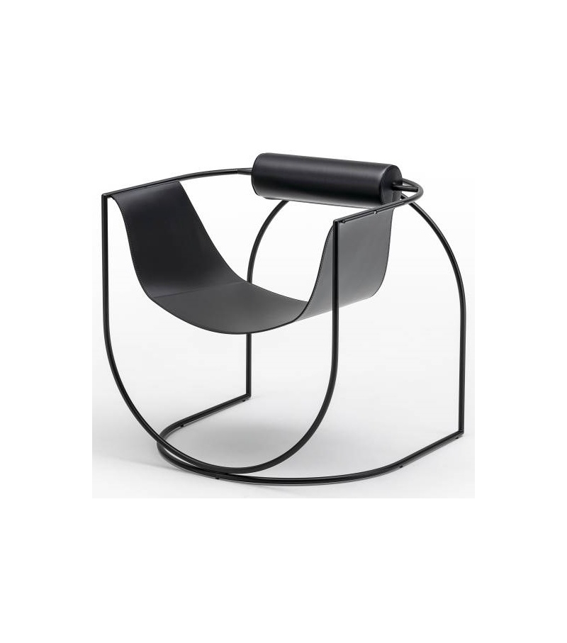Conçu par Marco Lavit pour Living Divani, ce fauteuil à la structure portante en tube d’acier existe en de nombreux coloris. Le revêtement de l’assise et du dossier est en cuir.