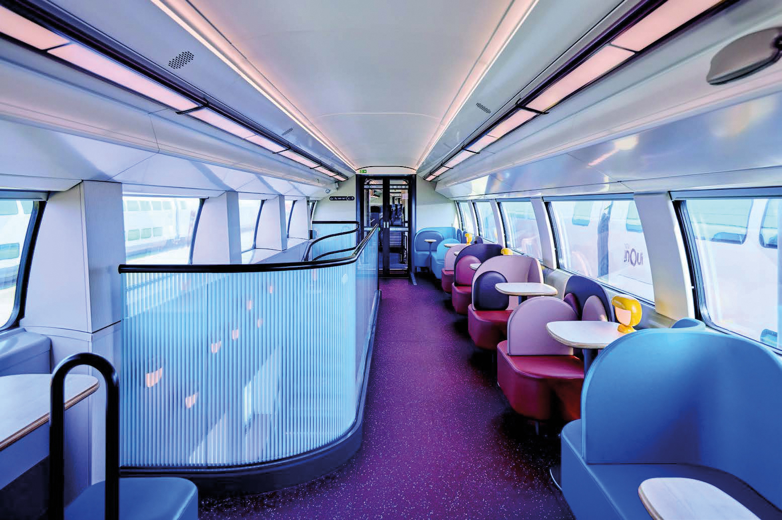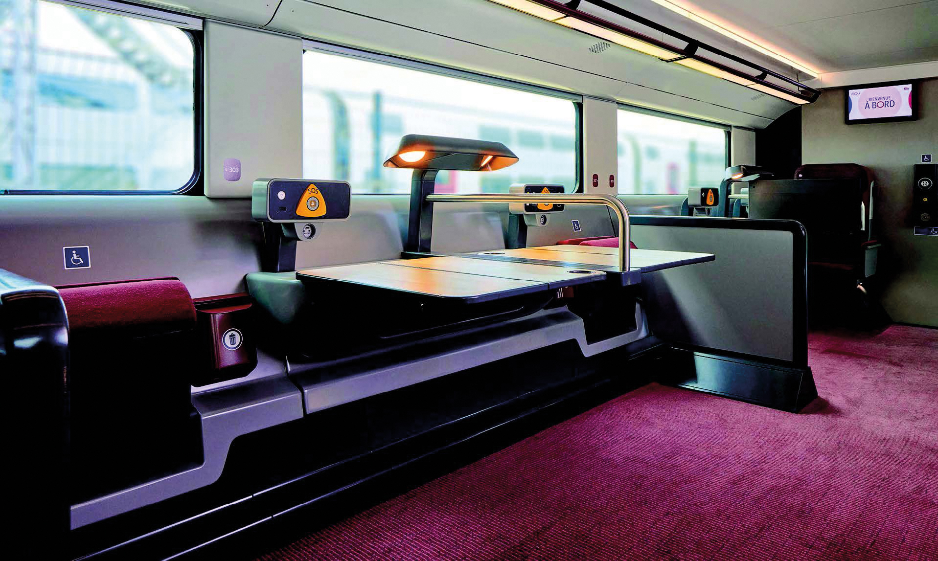 Au coeur du projet imaginé par le groupe Arep, en collaboration avec l’agence japonaise nendo, se trouve un mot-clé : Flow. Inspiré de l’écoulement d’une rivière, ce concept traverse l’ensemble du train, du dessin aérodynamique de son nez à l’harmonie des espaces intérieurs. À l’extérieur, le design se distingue par une ellipse noire allongée et un front retouché pour améliorer la pénétration dans l’air. À l’intérieur, la fluidité se traduit par des formes arrondies, rappelant les galets polis par l’eau, et par une palette douce relevée de touches jaunes pétillantes. La ligne d’horizon se trace par le jeu des couleurs, plus profondes en bas et plus lumineuses en haut. Le Bistro TGV Inoui se transforme en lieu de convivialité : un espace sur deux niveaux, mêlant libre-service intuitif et mezzanine chaleureuse distribuant 8 assises aux coloris et postures variés. Les sièges invitent au repos, tandis qu’une nouvelle génération de lampes prolonge la saga iconique des luminaires TGV. Le design signé Arep et nendo ne se limite pas à l’esthétique, il reflète une ambition environnementale. 97 % des matériaux utilisés sont recyclables, les teintes extérieures claires favorisent la réduction de la consommation énergétique en été, et l’entretien intérieur a été pensé pour être plus simple et plus durable. Le TGV Inoui entre à pleine vitesse dans une ère où performance technique, confort quotidien, responsabilité écologique fusionnent avec élégance.