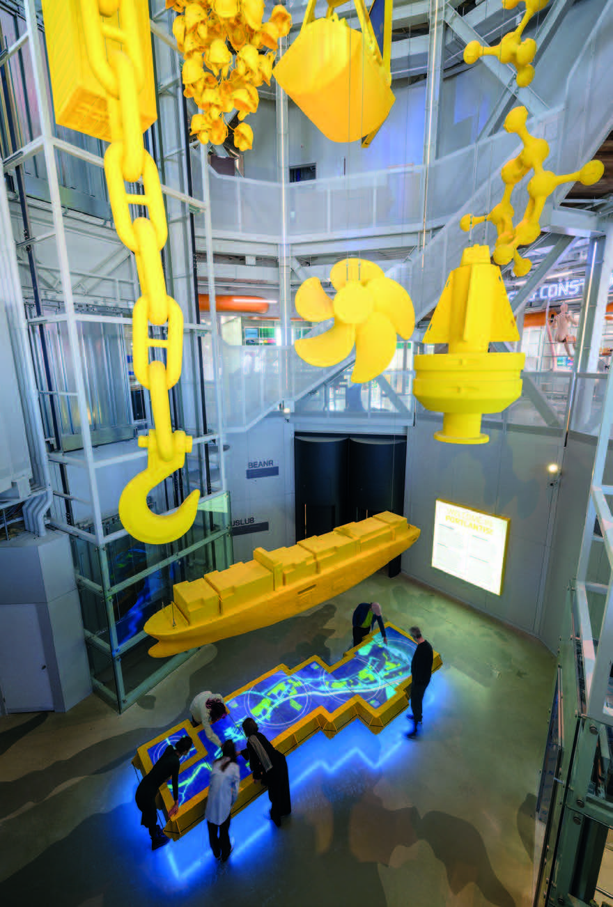 Immersion. Au coeur de l’atrium, une maquette géante du port et une sculpture en mouvement accueillent les visiteurs.