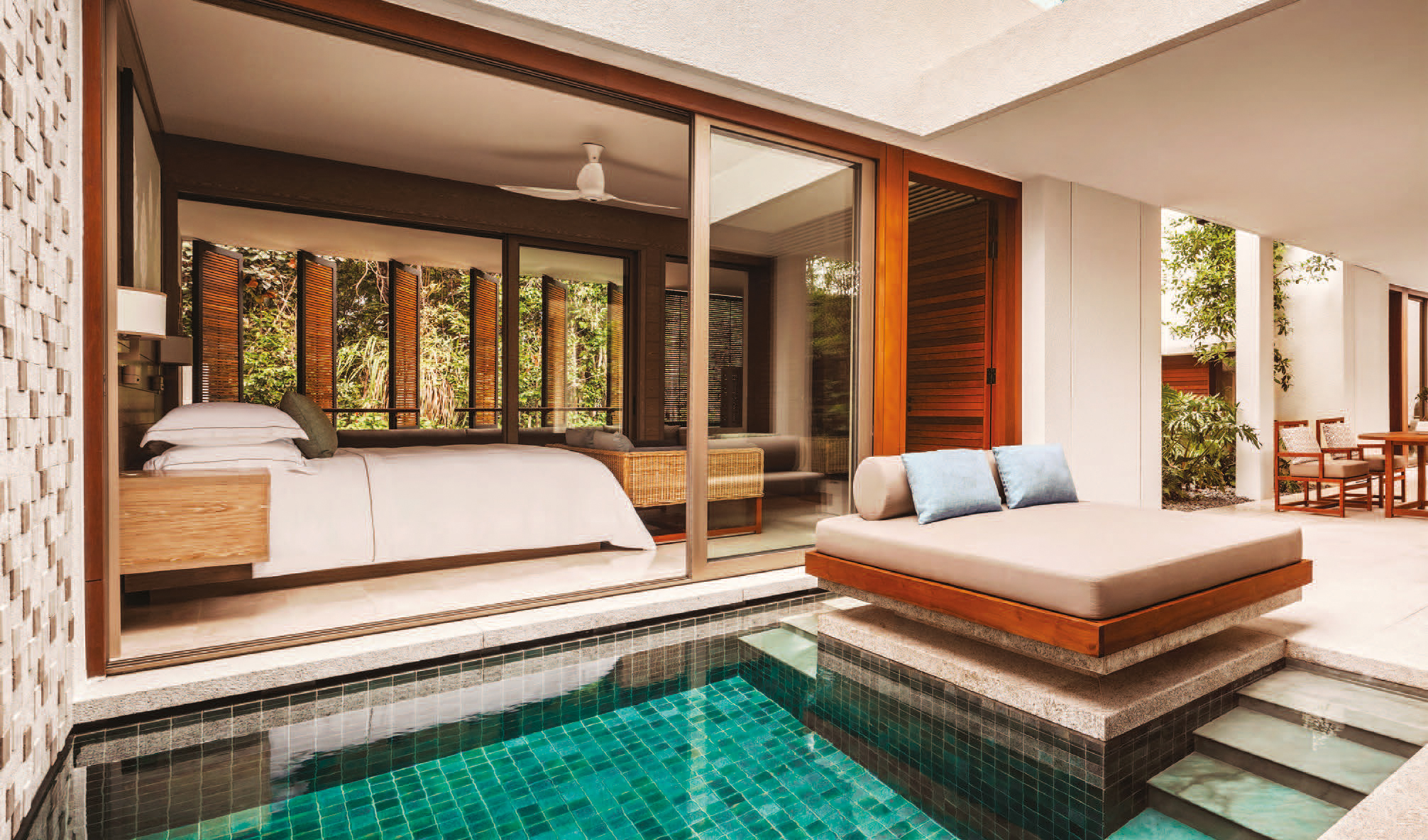 TURQUOISE. Inspirées d’un village malais traditionnel, les suites instaurent un dialogue constant avec l’environnement.