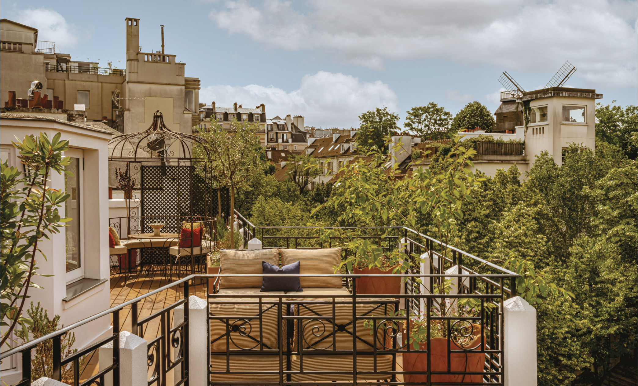 VUE. Aménagé et paysagé, le rooftop offre une vue magnifique sur le Moulin de la Galette, immortalisé dans un tableau d’Auguste Renoir en 1894.